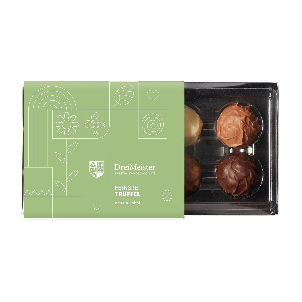 Diese elegante Geschenkverpackung mit 8 alkoholfreien Trüffeln vereint feine Schokoladenkunst mit frühlingshafter Leichtigkeit. Harmonisch abgestimmte Füllungen und zart schmelzende Kreationen sorgen für vielseitige Genussmomente – ganz ohne Alkohol. Die dekorative Frühlingsbanderole verleiht der Verpackung eine frische, saisonale Note und macht sie zur idealen Aufmerksamkeit für Familie, Freunde oder Geschäftspartner.